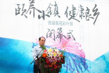 之后良乡镇副镇长崔旭东致闭幕辞,他说:“本次菊花彩叶展累计接待游客4万余人次,社会秩序平稳有序,让游人在赏菊的同时也感受到了良乡向着‘颐养小镇’发展的美好愿景,收到了较好宣传良乡、展示良乡的社会效果。本次活动成绩的取得,得益于地区百姓和社会各界的大力支持,得益于承办方的精心组织,得益于良乡镇党委、政府全体工作人员的辛勤劳动,在此向为本次菊花彩叶展辛勤付出的全体工作人员及安保人员,向承办单位、协办单位表示了感谢和敬意。”,崔镇长还说,“本次菊花彩叶展上无论是‘生态之城 智慧良乡’主题高峰论坛还是‘生态之城 宜居良乡’主题展览以及摄影、绘画竞赛,皮影戏表演,名犬训练和名猫展示,颐养健康讲座等各具特色的主题日活动,都充分展示了良乡的风土人情,加深了游客对良乡的了解。我们也会不断吸取教训和总结经验,为今后全镇发展特色旅游提供各种基础数据。”,最后他宣布“颐养小镇 健康良乡”首届菊花彩叶展圆满闭幕。