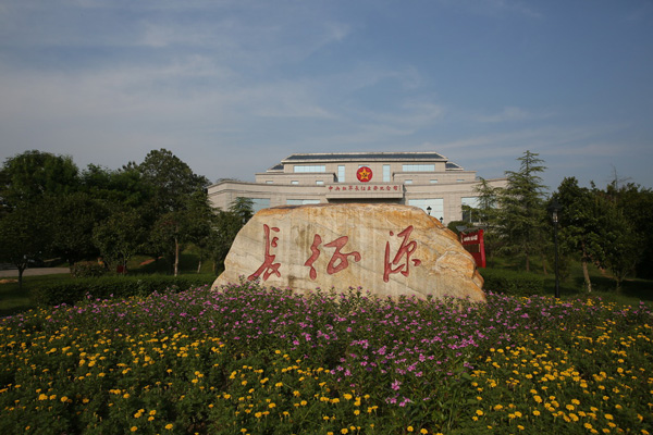 江西于都,中央红军长征出发纪念馆前的石碑上刻着“长征源”。 澎湃新闻见习记者 谢匡时 图