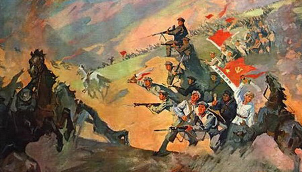 油画《吴起镇上破敌骑》