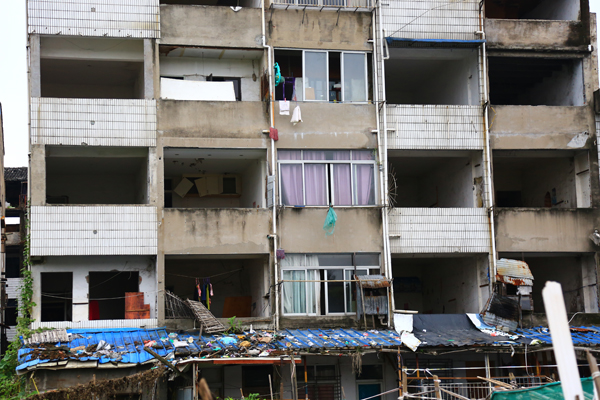 一幢已开始拆除的房屋,里面还有人居住