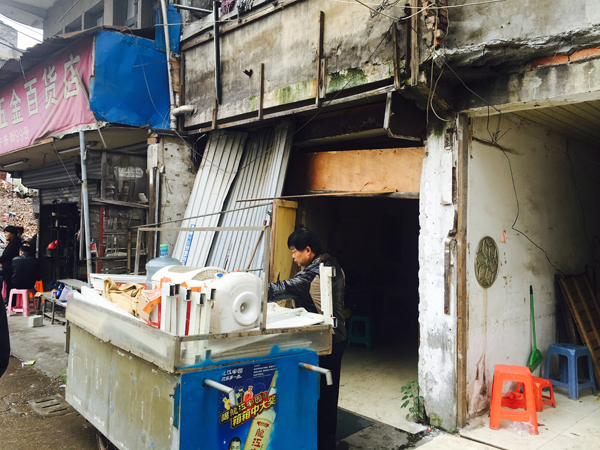 他说,恩光他们搬回来后对房子进行了简单修缮、加固,以每月200~300元租给在附近工厂打工的人。虽然是被拆过的,但房租低,还是有人住。一楼开起了杂货铺、熟食店、蔬菜店,上面的租给打工者住。