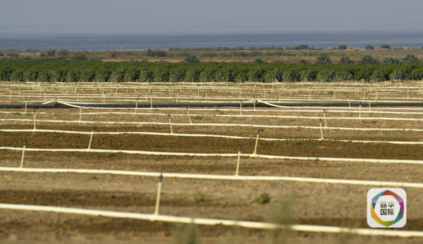 2016年8月25日拍摄的索尔顿湖南岸农田的喷灌系统。索尔顿湖的南北两岸是大片的农业区。(摄影杨磊,新华国际客户端报道)
