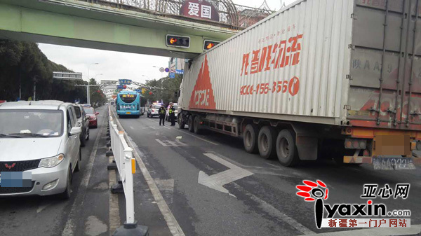 因此目前头区交警也一直在该路口的BRT车道上对于BRT车辆进行疏导,以免出现BRT由于要绕过该大货车与对面来车“头对头”的情况。头区交警正在采取对大货车轮胎放气等方法对车辆高度进行降低,预计16时之前可以将车辆移开,交通恢复正常通行。