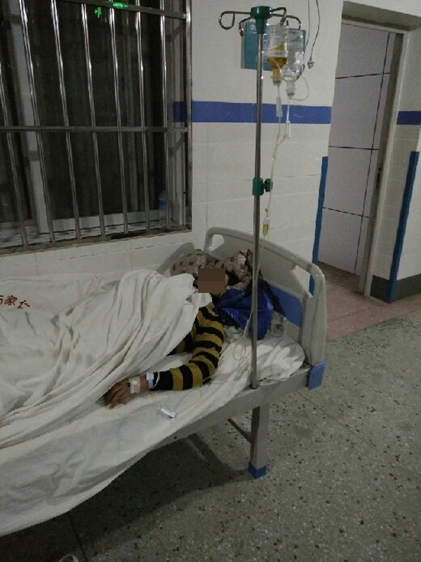 巧家县教师饶菊,被校长妻子打伤后住院。