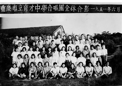 1951年6月孙铭勋(前起第二排右6)和育才中学合唱团合影。