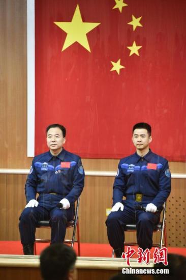 图为10月16日航天员景海鹏和陈冬在问天阁接受中外记者的采访。付毅飞摄