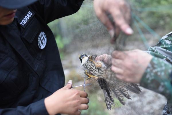 志愿者表示,捕鸟者往往是男人下网,女人每天上山摘鸟。