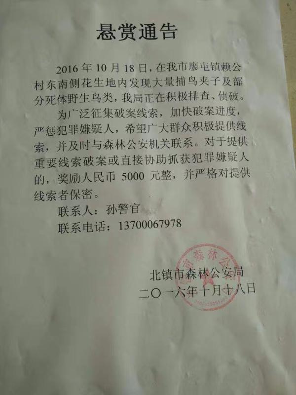 原标题:辽宁锦州再现非法捕鸟:野鸟被鸟夹拦腰夹断,警方悬赏寻线索