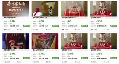 被挂在网上进行竞价拍卖的部分罚没酒