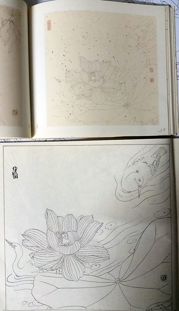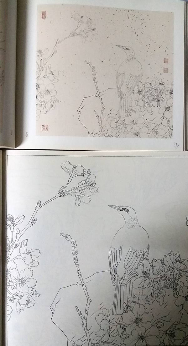 上幅《玉苍风华·郭远白描作品集》涉嫌原样抄袭下幅《陈运权白描花鸟画集》