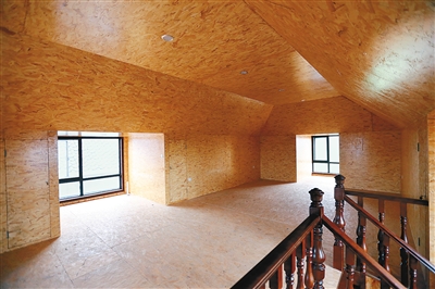 在户县南羊村,提起“郑中伏”的名字很多人都知道,“这人干了一辈子木工活,半年时间手工打造了一套木质小洋房。”村民说。昨日,记者找到了郑家这套木质洋楼。房子总共二层,顶部为塔尖样式。与旁边的砖混结构房子相比,这套木质房子挺别致。走进房子,立刻闻到一股木料的清香。“怎么样,香不香?这是进口松木的味道。”向记者介绍木料的正是郑中伏。得知记者来意,郑师傅兴奋地带着记者到每个房间乃至每处角落参观。记者看到,整个楼房的样式为5室4厅3卫1厨。“怎么样,咱这房子不差吧。”郑中伏得意地说。