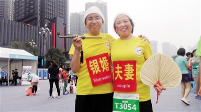 银婚夫妇怀旧风打扮 牵手跑十公里