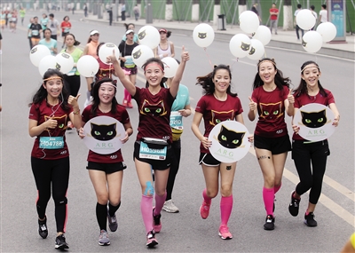 鸣枪前5分钟,宋文倩才赶到起跑区,两束俏皮的马尾,身穿一身蓝色的旗装非常显眼,“这是特意买的格格装哟!”宋文倩告诉记者,去年她就参加了女子半马。