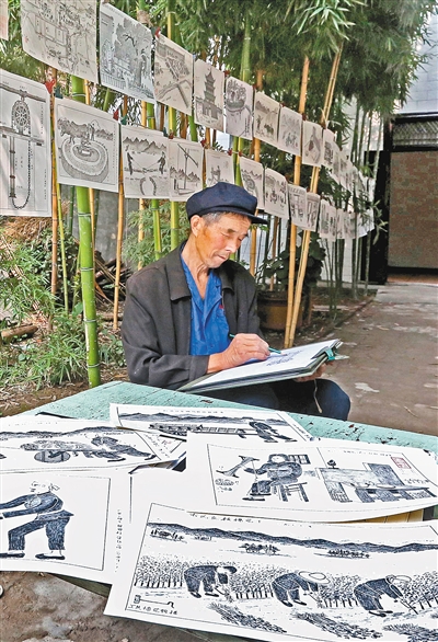 户县七旬农民 铅笔手绘“农耕史”