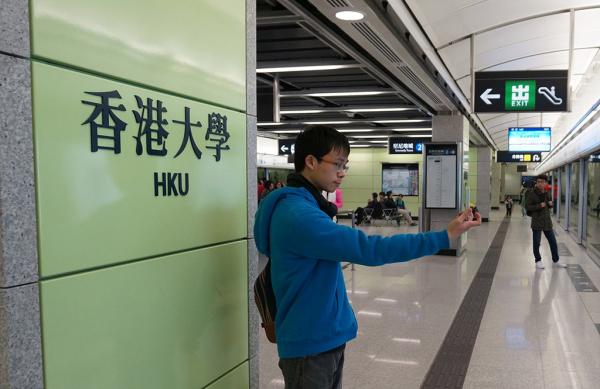 一名青年在香港大学站月台前自拍。 东方IC 资料图
