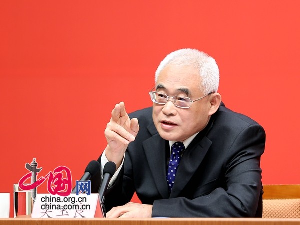 中宣部副部长蒋建国主持发布会,出席发布会的还有:中央纪委副书记吴玉良,中组部副部长齐玉,中宣部常务副部长黄坤明。