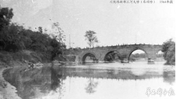 1933年,刘文辉发动“毗河之战”和邓锡侯争夺地盘,三河场是双方战斗的重要区域,毗桥也被毁去几个孔洞。