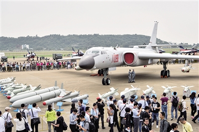 此次航展上,多次展翅东海、南海和西太平洋的空军轰-6K飞机,面向社会公众静态展示。