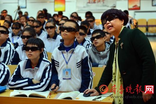 齐鲁晚报11月2日讯 (记者 唐园园)当3D技术走进课堂,晦涩难懂的抽象图像瞬间变成现实可感的动态图画,学生们攻克学习难题就像看电影一样简单快乐。11月1日上午,威海市皇冠中学初二·六班的全体学生和部分教师100多人齐聚阶梯教室共上一节奇妙生动的3D生物课。