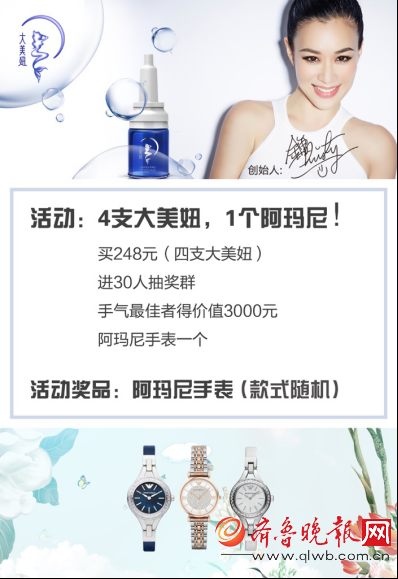 大美妞品牌公司为了回馈顾客,近日特别推出“四只大美妞 一支阿玛尼”抽奖活动V:dameiniuguanfang。