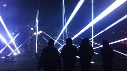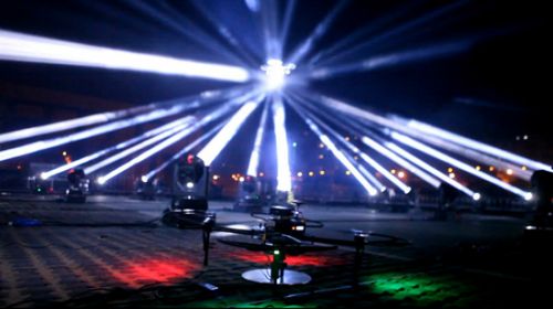 走近清华美院北侧停车场就看到数道光束直冲云霄,背景音乐的节奏律动仿佛敲进在场观众的心中。通过工作人员的介绍了解,这场无人机灯光秀启用了5架无人机,地面上还布置了共29盏电脑灯,能够跟踪无人机进行灯光秀表演,灯光与无人机的配合随着音乐构成了不断变化且体量巨大的“光雕塑”,这样的表演形式在国内是首次上演,现场效果十分震撼!