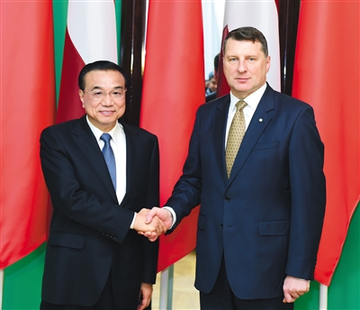 11月4日,国务院总理李克强在里加总统府会见拉脱维亚总统韦约尼斯。第六届中国-中东欧国家经贸论坛在拉脱维亚首都里加举行。 新华社记者 张铎 摄