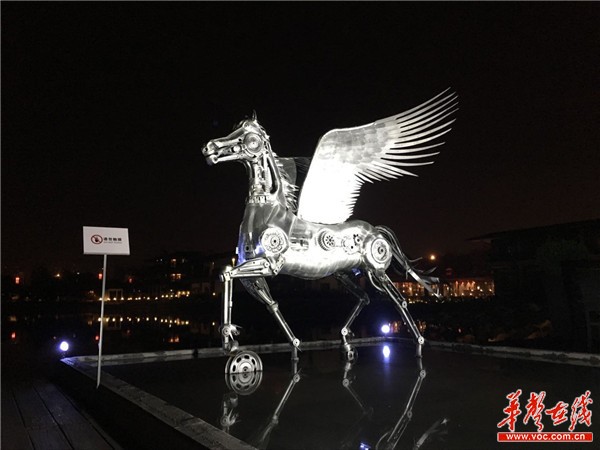 “《飞马》作品的创作还要感谢我的女儿,是她给了我灵感,当时女儿看了我原来的设计稿,就跟我说,‘爸爸,这个飞马现在还停在地上,为什么不加个风火轮?’我当时就觉得女儿的建议非常好,立即改设计,所以你们现在才能看到如此动态的《飞马》。”侯中民说道。