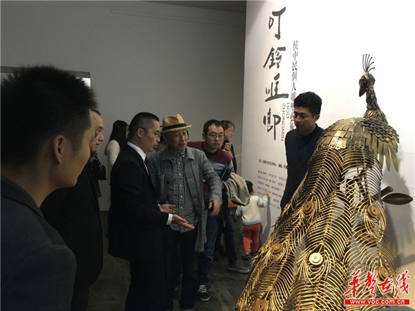 华声在线11月6日讯(记者 潘梁平) 11月5日晚八点, “叮铃哐啷——侯中民个人雕塑艺术展”在长沙月湖公园内的月湖时当代艺术中心正式开幕。展览上,由废弃的铜、铁、铝等金属机械零件材料创作而成的30件动物造型雕塑作品,栩栩如生,惟妙惟肖,给参观者留下了深刻的印象。