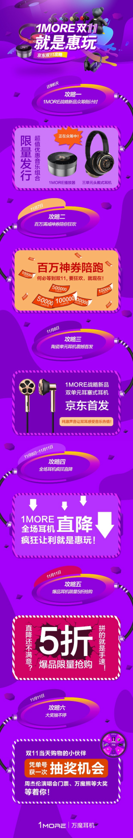 直降还不满意?双11当天,1MORE准备了爆品耳机5折限量抢购活动,拼的就是手速!
