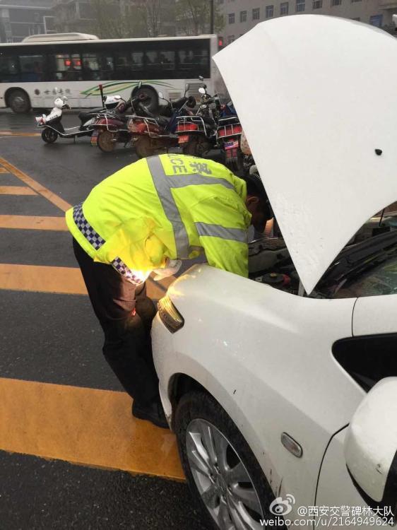 近日,一辆小轿车停到西安南门内盘道,司机说一路上听见车里好像有猫的叫声。西安交警碑林大队的交警们帮忙打开引擎盖,果然发现车盖子里有一只喵星人。交警把小猫抱出来,领养了。图片来源:西安市公安局交通警察支队碑林大队官方微博