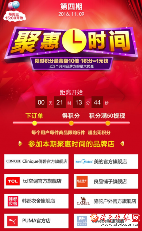 近日,一款新的APP在双11之前搅出了一点动静,打出了“甩双11几条街的正品低价狂欢”的口号。据了解,定位于品牌直营电商平台的真惠选,于每周三下午15:00的【聚惠时间】栏目推出了近百款三个月内折扣力度最大的热销商品,且于当日24时全部售磬!该商品不仅全部是淘宝、天猫品牌直营店的活动商品,而在【聚惠时间】购买还享有最高10倍的限时积分 ,一积分等于一块钱。即便在双11之际,也会在双11预售价的基础之上仍给出最高10倍的限时积分,实现真正的折上折!