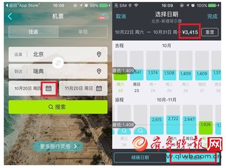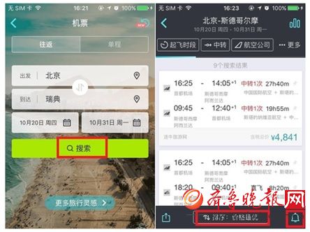 天巡App设有独特的比价功能。即“整月”搜索,能够帮你掌握价格走势,轻松搜索出具体哪天出行最便宜。以北京到斯德哥尔摩为例,打开天巡旅行App,在出发和返程日期中选择“整月”进行搜索,即“模糊搜索”功能,找出时间段内相对便宜的机票,再结合自己在此期间的出行条件进行购买。如:选择10月22日出行,10月31日返回,平均一人往返斯德哥尔摩含税机票只需要不到三千五百元。你心动了吗?