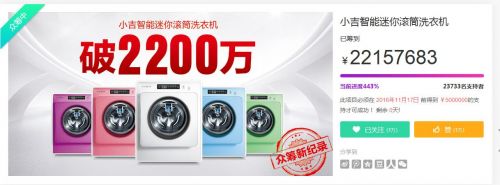 原标题:2215万,小吉智能迷你洗衣机创京东家电记录