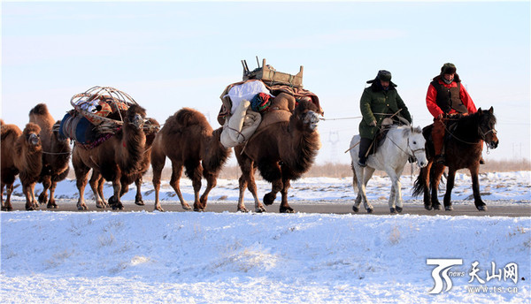 天山网讯(通讯员巴合提别克·阿什木汗摄影报道)2016年11月19日,新疆阿勒泰地区的哈萨克族牧民在转场途中。