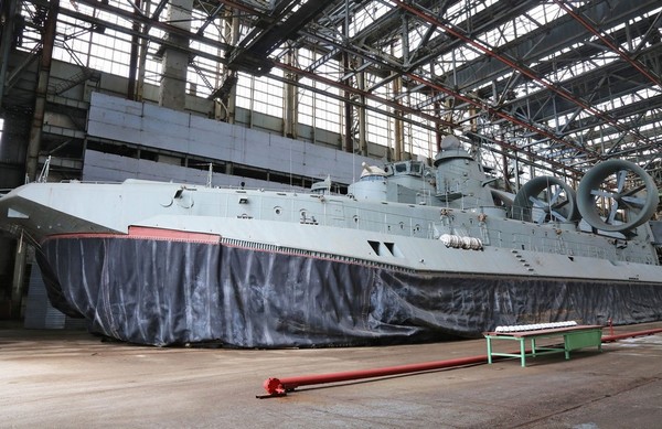 克里米亚的大海造船厂船坞中的一艘“野牛”气垫船正在等待维修。中国曾与克里米亚“大海”造船厂签署了合同,购买2艘并仿制两艘该型气垫船。