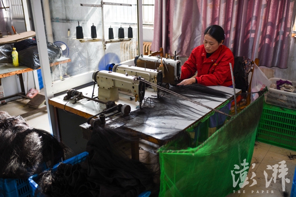 如今,港集的人发加工已经形成了相对完整的体系,经过原料收集、清洗消毒、缝制烫染等多个生产流程,向世界各地出口。