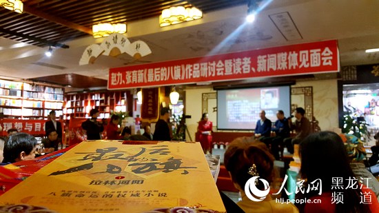 人民网哈尔滨11月24日电(焦洋)11月24 日下午,哈尔滨市作家协会在慧文书院举行赵力、张育新《最后的八旗》作品研讨会暨读者、媒体见面会。研讨会由哈尔滨市作家协会主办,是协会“作家论坛”的第一期。作者赵力、张育新创作 《最后的八旗》历时5年,90万字,描写人物上百个,全书分为《拉林河阳》、《通天神树》、《末世微光》三卷。哈尔滨市作家协会主席唐飙,协会副主席谢幕、协会副秘书长张春媚出席作品研讨会。