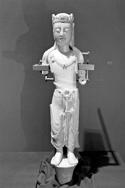 (图1)菩萨立像 北齐 石残 高70厘米 河北省临漳县习文乡北吴庄佛像埋葬坑发掘出土 现藏中国社会科学院考古研究所 李旭摄
