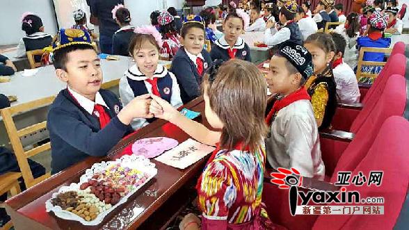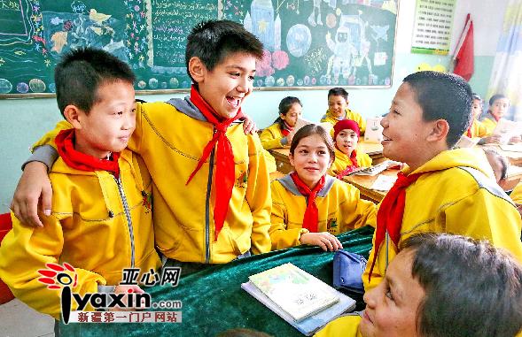 11月29日,乌鲁木齐市雪莲小学五年级(4)班和(7)班的学生在课余时间一起交流。亚心网记者高原玲子摄