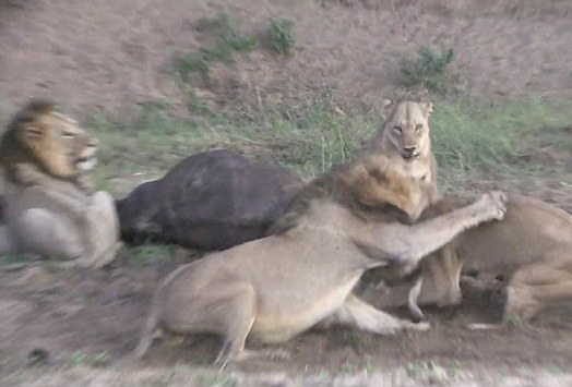 机智!南非两狮群内讧水牛伺机逃跑(图)