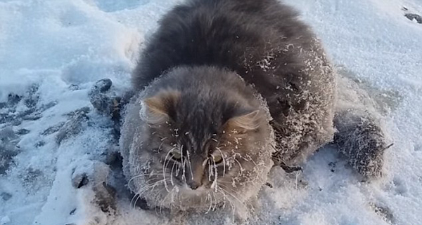 暖心!俄罗斯热心夫妇成功救出掉入冰坑猫咪(图)