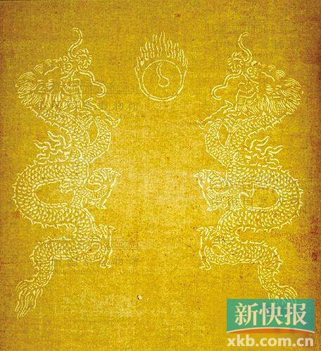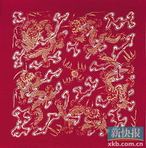 粉白地双龙戏珠暗花宣纸