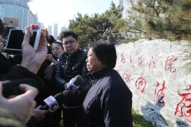 2016年12月2日,最高人民法院第二巡回法庭改判聂树斌无罪。庭审结束后,聂母在法院外接受媒体采访。新京报记者王飞摄