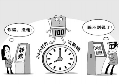 此前,据公安机关反映,电信网络新型违法犯罪中近一半受害人,是在不法分子花言巧语或威胁恐吓下,通过自助柜员机向诈骗账户转账。受害人大多在完成转账后的较短时间内会意识到上当受骗,但资金已经转出,并被不法分子立即转移。针对这种情况,为最大限度阻断诈骗分子诱导受害人进行资金转账和赃款变现,央行规定,自2016年12月1日起,除向本人同行账户转账外,个人通过自助柜员机转账的,发卡行在受理24小时后办理资金转账,个人在24小时内可以向发卡行申请撤销转账。这是特定阶段、特殊情况下采取的针对性措施,有助于将资金阻截在被诈骗分子转移之前,最大限度地保护客户的资金安全。