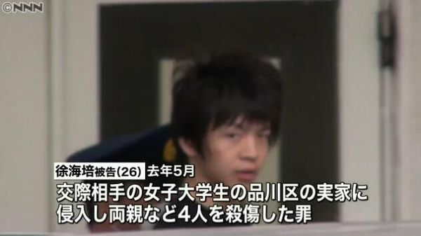 去年5月23日,被告人徐海培从阳台闯入东京都品川区的女友所住公寓,用菜刀将该女子的继父李容旻(韩籍,殁年47岁)捅死。之后又陆续将女子母亲、赶来的女警和女子本人刺伤。