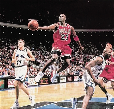 “飞人”乔丹当年在NBA球场上大展英姿。