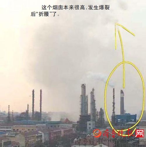 临邑山东恒源石化股份有限公司烟囱爆裂“折腰” 一人受伤
