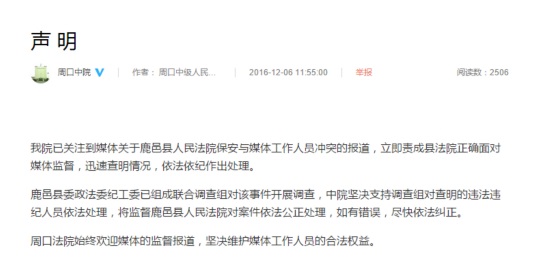 河南记者鹿邑法院采访被打砸抢进展:法院法警大队长被免职