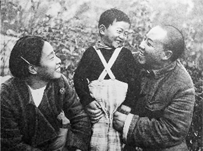 1945年,王若飞和夫人李培之、儿子毛毛在一起。