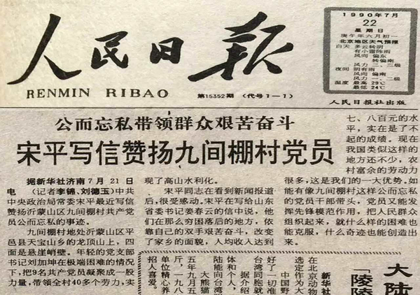 1990年7月,宋平致信山东省委书记姜春云赞扬九间棚。